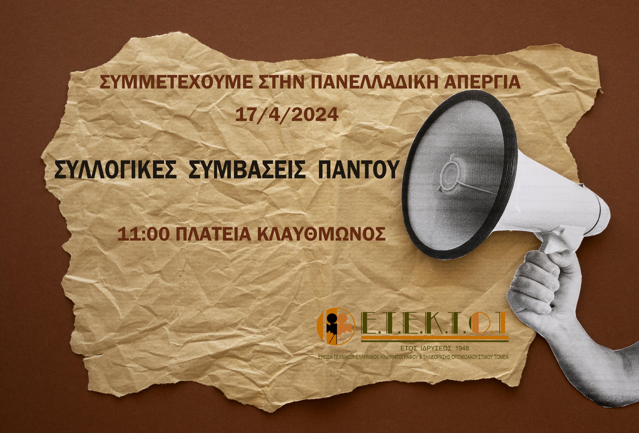 Συμμετέχουμε στην 24ωρη Πανελλαδική Απεργία στις 17/4/2024